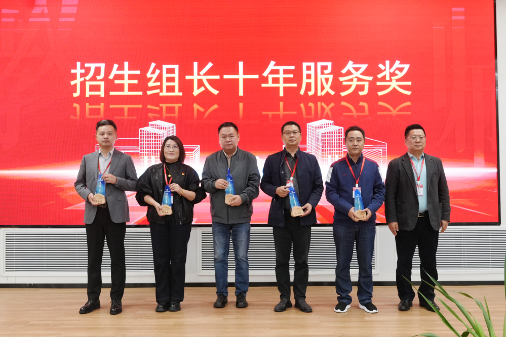 党委书记、校长周庆礼为5名“招生组长十年服务”表彰对象颁奖。