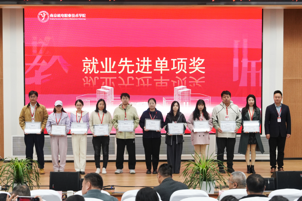 党委委员、副校长孔德丽为10名“就业先进单项奖”和4名“就业工作先进个人”颁奖。