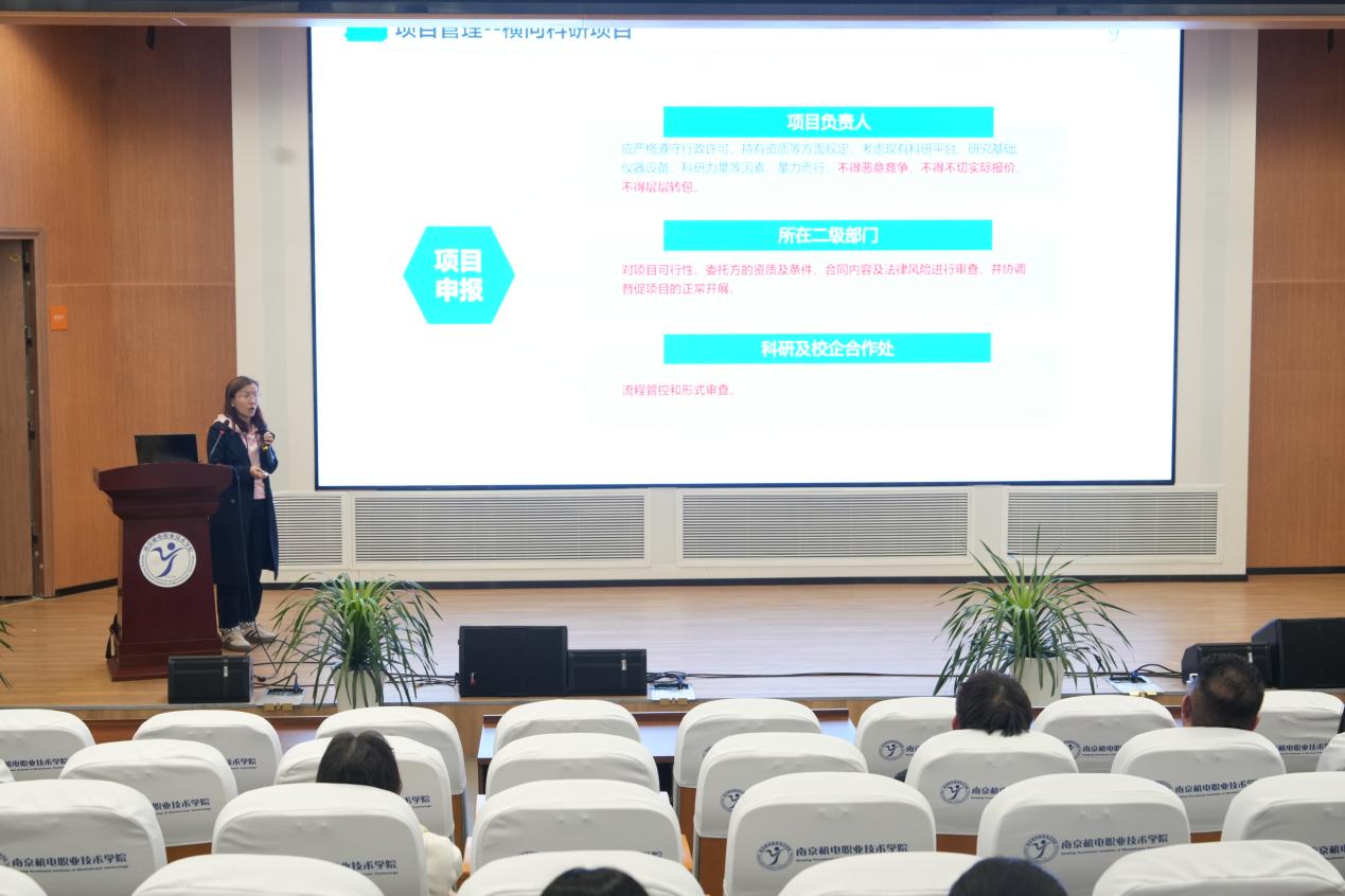 同年9月,为贯彻落实《国务院关于优化科研管理提升科研绩效若干措施的通知》(国发〔2018〕25号)、《江苏省关于深化科技体制机制改革推动高质量发展若干政策》(苏发〔2018〕18号)以及《南京市人民政府办公厅关于改革完善南京市市级财政科研经费管理的实施意见》(宁政办发〔2022〕45号)等上级文件精神,学校对《科研项目管理办法》《横向科研经费管理办法》《纵向科研项目经费管理办法》及《校级科研项目经费管理办法》等一系列科研管理制度进行了修订,进一步健全和完善了学校科研管理体系。10月23日下午,李木香就管理职责、项目管理、科研诚信、经费管理、资产管理等关键内容,对各项管理办法进行了解读,并就与会教师提出的问题进行了现场解答与交流。