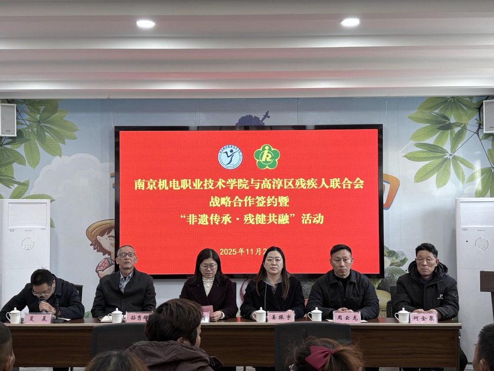 2025年11月27日,学校与高淳区残疾人联合会共建的“伟德国际victor1946社区助残教育服务站”在固城街道残疾人之家正式揭牌,并启动“非遗传承·残健共融——非遗文化赋能行动”社区教育活动。活动由高淳区残联副理事长夏晨主持,学校党委委员、纪委书记姜振宇,高淳区残联理事长王翠香,继续教育学院院长周云龙等出席。