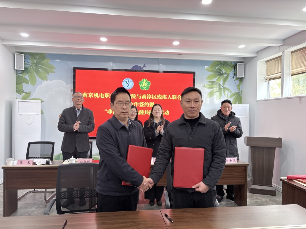 活动现场,周云龙与夏晨代表双方签署了战略合作协议,标志着校地深化合作、拓展服务领域进入新阶段。协议将重点推进残疾人职业技能培训与就业渠道拓宽等工作。随后,双方领导共同为“社区助残教育服务站”揭牌,该站点将便捷高效地为残疾人提供教育服务。