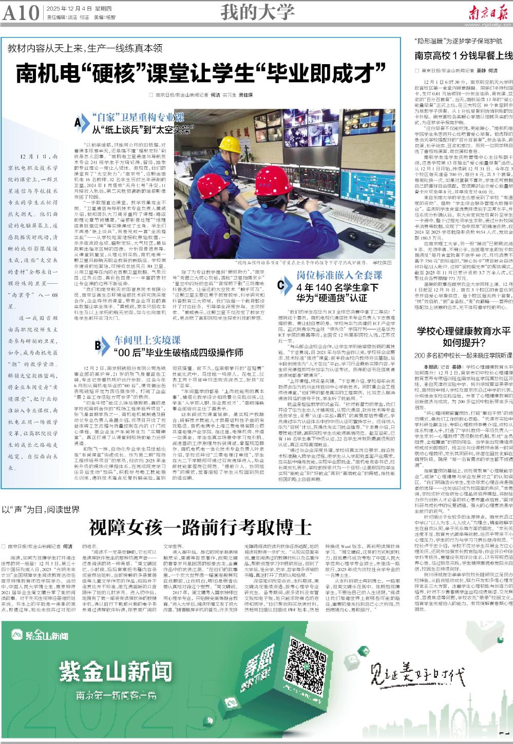 近日,《南京日报》A10“我的大学”版以大篇幅报道我们在产教融合领域的显著成果,这不仅是对学校深化产教协同、培养高素质应用型人才工作的高度认可,更是全体南机电人并肩奋斗的珍贵见证。全文如下: