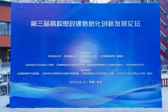 2025年12月13日,第三届全国高校思政课信息化创新发展论坛暨全国高校“数字马院”联盟2025年年会在京举行。本届年会由北京科技大学、北京邮电大学、北京科技职业大学及《思想教育研究》编辑部联合主办,来自全国300余所高校的500余名思政课专家、学者及教师参会。我们马克思主义学院院长张玥应邀出席。