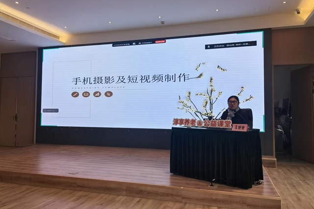 揭牌仪式后,我们数字媒体技术专业教师王珊珊带来首场公益课——“手机短视频拍摄与制作”。她结合专业积累与实践案例,以浅显易懂的方式讲解拍摄技巧与后期流程,课堂氛围活跃。老年学员们积极互动,纷纷表示收获颇丰。