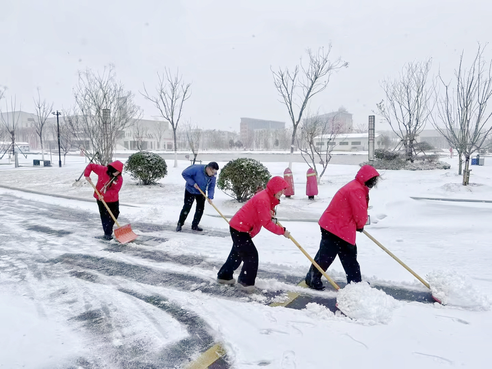 1月20日,高淳区迎来今年首场强降雪。积雪在装点校园的同时,也给师生出行和校内设施运行带来一定压力。后勤安保处第一时间启动应急预案,组织人员投入扫雪除冰、设施检查和餐饮保障等工作。
