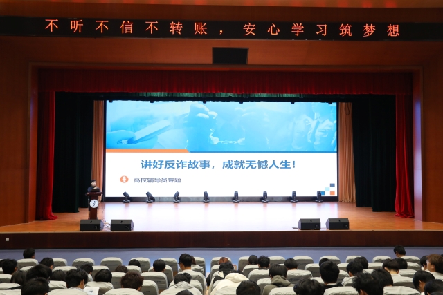 为深入贯彻落实习近平总书记关于打击治理电信网络诈骗犯罪工作的重要指示精神,切实筑牢校园安全防线,提升全体师生的识诈防骗能力,11 月 4 日下午,我们特邀陈红燕警官走进校园,开展主题鲜明的反诈专题讲座。学校领导及学生代表800余人现场参与,共同筑牢校园反诈“防护网”。