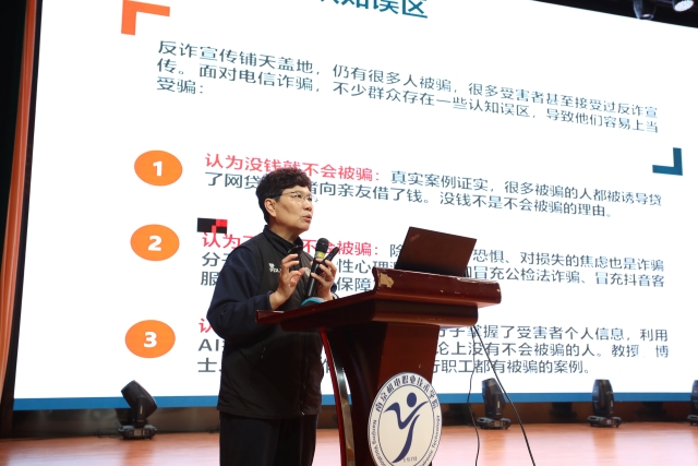 本次讲座以“讲好反诈故事,成就无憾人生” 为核心观点,精准锚定高校诈骗高发领域。讲座现场,陈红燕警官结合近年来江苏省内高校发生的典型诈骗案例,针对“鬼、财、色、情”四类高频骗局陷阱展开系统剖析:在“鬼”类骗局中,揭露了“封建迷信消灾”等利用心理弱点的诱导套路;针对“财”类陷阱,详解了“刷单返利升级”等新型诈骗的隐蔽操作;围绕“色”与“情”类骗局,拆解了“网络交友诱导消费”等场景的情感操控逻辑,让在场师生真切感受到诈骗风险的现实威胁。