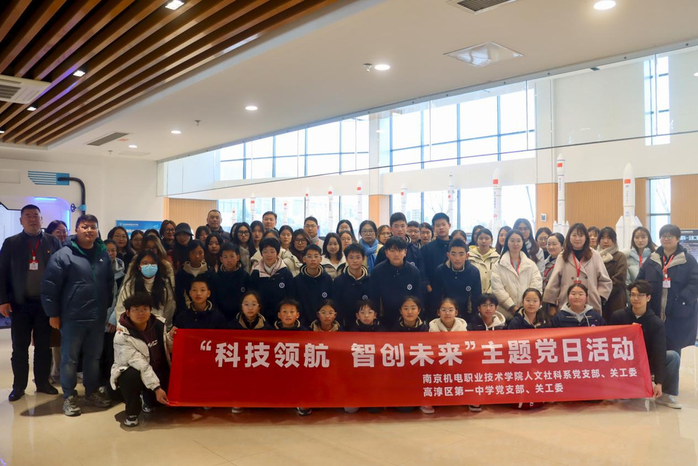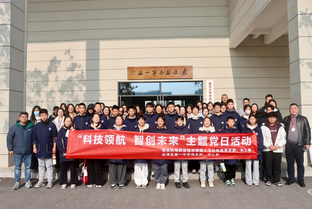 为深入落实立德树人根本任务,推动科技教育与人文素养协同发展,实现“校地共建、资源共享、协同育人”目标,2025年12月18日下午,南机电人文社科系党支部、关工委联合高淳区第一中学党支部、关工委共同举办“科技领航,智创未来” 主题党日活动。人文系团委积极参与活动筹备与组织工作,组织青年团员志愿者全程提供引导、讲解辅助等服务,为活动顺利开展注入青春活力。高淳区第一中学30余名师生代表与人文系全体党员老师、系部关工委成员共同参与此次活动,在科技探索与红色传承中厚植家国情怀、激发奋进力量。