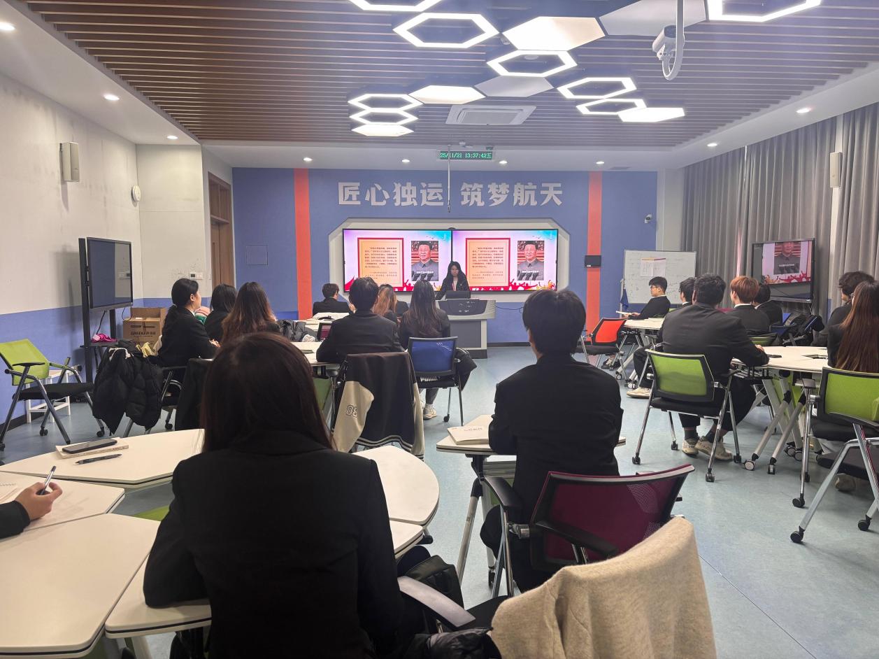 2025年11月19日晚,在第三节课上,纪检委员张晨通过集中授课的形式,深入学习了党的光辉历程。他带领学员们回顾了雨花英烈等革命先烈的光辉事迹,特别是恽代英、邓中夏和史砚芬三位英雄为了民族的解放和人民的幸福英勇无畏、无私奉献的精神,让学员们更加深刻地认识到今天的幸福生活来之不易,激发了他们为实现中华民族伟大复兴而努力奋斗的决心。