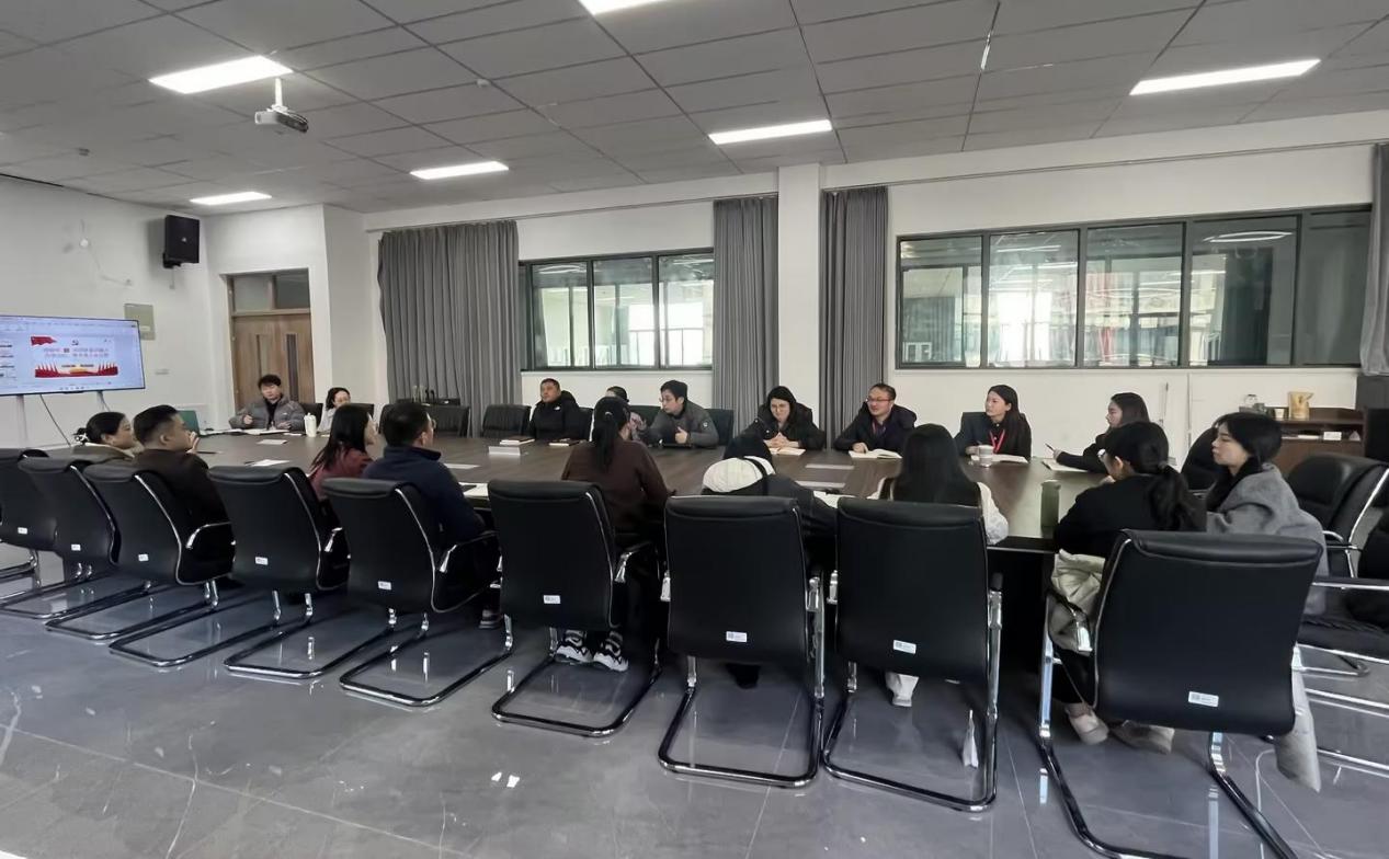 12月18日下午,电子工程系党支部在慎行楼304会议室组织全体教工党员开展政治理论学习。本次学习以“将铸牢中华民族共同体意识融入办学治校、教书育人全过程”为主题,由党员禹花宁老师主讲。