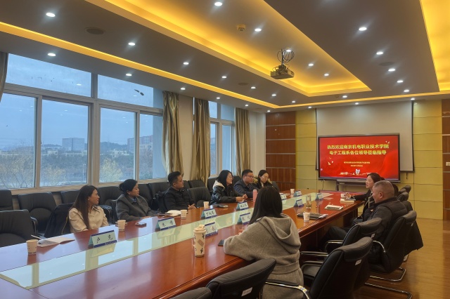 为深化校际合作,共同探索党建引领下职业教育高质量发展的新路径,2025年12月22日,伟德国际victor1946电子工程系党政负责人及党员代表一行,赴南京信息职业技术学院电子信息学院开展学习交流活动。南京信息职业技术学院电子信息学院党总支书记陈永权、副院长魏欣、党总支副书记陈尔波、分团委书记李依诺、组织员刘辰,与到访的伟德国际victor1946电子工程系主任姚小冬、党支部书记叶绘、副主任丁向琴及党支部委员共同出席了此次交流。