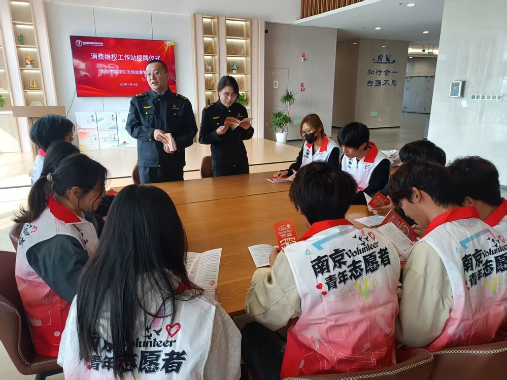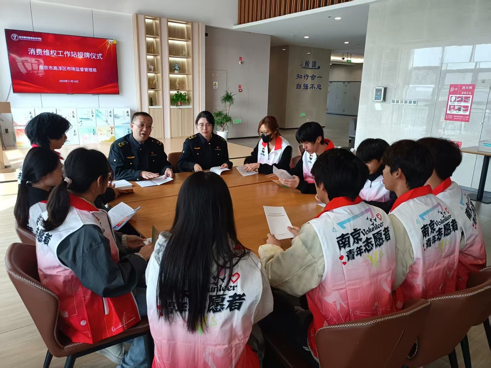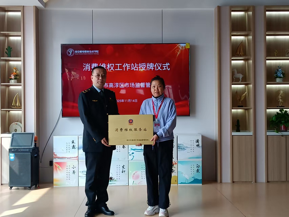 为切实保障学生消费权益,有效破解消费维权难题,督促校内商家诚信经营,11月14日上午,南京市高淳区市场监督管理局开发区分局副局长汪晖、黄艾静一行来到我们,在教工食堂举行消费维权工作站授牌仪式。后勤安保处副处长孙永玲及学生代表共同参加。