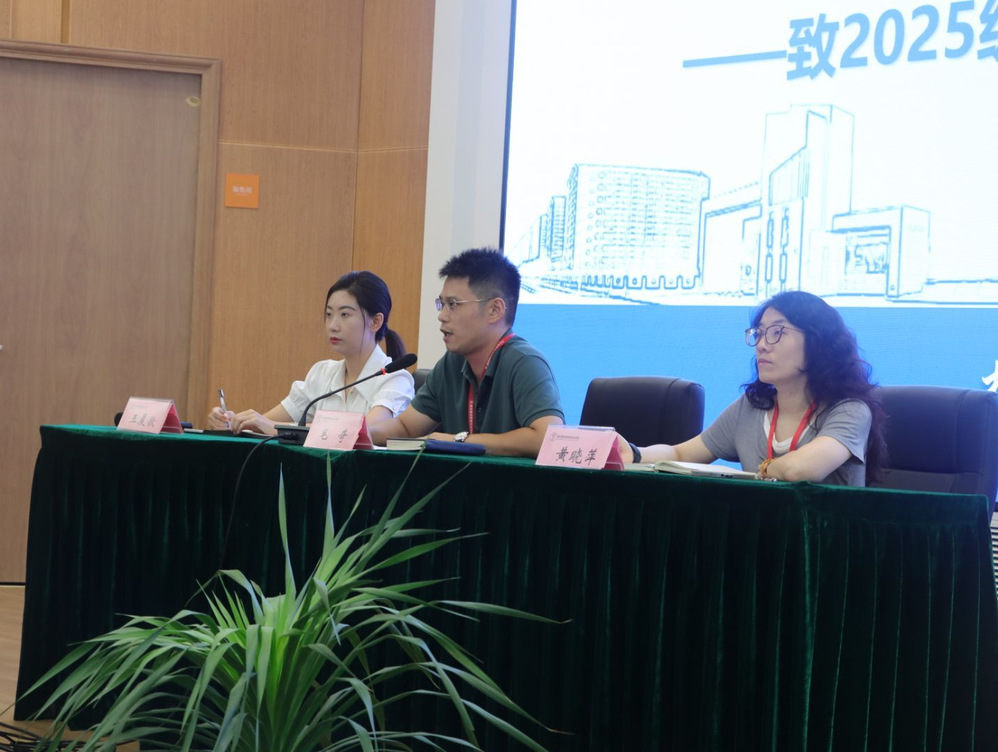 10月10日中午,机械工程系2025级新生开学第一课在乐学楼报告厅举行。会议由学工干事原智慧主持,系主任毛奇、党支部书记胡枫、副主任黄晓萍、团委书记王晨歌通过寄语、规划、安全三大环节,为新生构建大学成长指导体系,助力学生快速融入专业环境、明确发展方向。