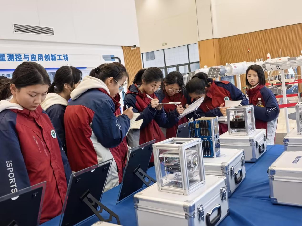 在各个体验组,同学们展现出浓厚的兴趣与饱满的热情。在铁齿钢牙3D打印体验组,大家通过扫描建模,亲眼见证创意如何被逐层打印转化为立体实物;在无人机飞行体验组,同学们手握遥控器,操控无人机起降转向,体验翱翔视角;卫星测控中心里,众人凝神聆听讲解,通过地面接收站与“南京号”科普卫星进行“天地对话”;创意工坊区域热闹非凡,激光切割机下诞生出个性化书签,陶艺拉坯中泥土在指尖成形,热转印技术让创意跃然于实物之上。数字媒体技术体验区则通过体感交互,带领同学们进入虚拟创造的世界;安全应急教育体验中心通过模拟实景,帮助同学们提升自我保护与应急处理能力。每一个场馆都热火朝天,科技不再是书本上的概念,而成为可触、可感、可创造的生动实践。