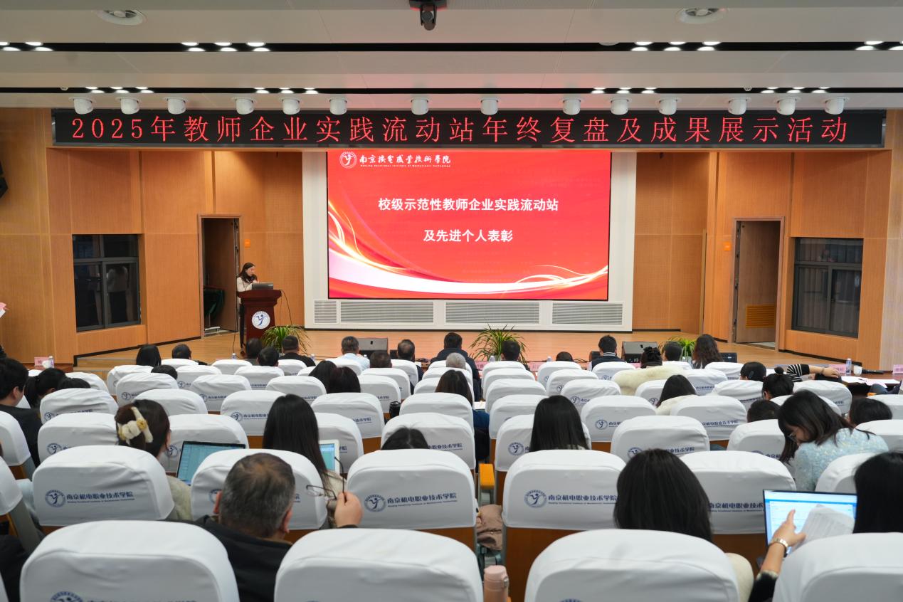 2026年1月21日下午,2025年教师企业实践流动站年终复盘及成果展示活动在学校乐学楼报告厅举行,全面总结一年来教师企业实践流动站的建设成效,表彰先进典型,共谋未来发展蓝图。南京高淳高新技术产业开发区管理办公室副主任吕鹏飞、南京高等职业教育创新创业园管委会副主任汪春荣、南京市高淳区工业和信息化局产业推进科科长孙立琰,学校党委书记、校长周庆礼,党委委员、副校长刁爱军、以及来自南京钢铁股份有限公司等合作企业领导,学校职能部门、系部负责人等领导出席活动,流动站团队成员及全体专业教师共200余人参加本次活动。活动由科研及校企合作处教师朱洪霞主持。