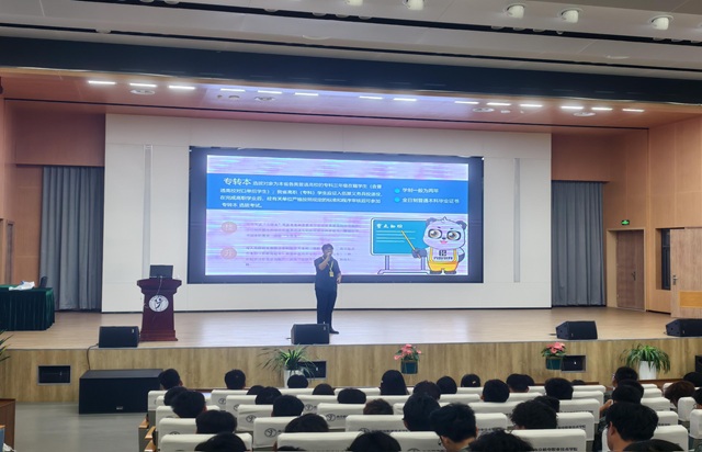 为切实解决学生在江苏省普通高校选拔优秀专科生转本科学习统一考试(以下简称专转本)报名工作中的困惑,搭建优质升学指导平台,9月19日,驻校三家资深专转本培训机构:苏天教育、弘越教育、兴国教育,在学校青春剧场及乐学楼报告厅举办专转本专题宣讲活动。25级新生齐聚现场,共同参与这场 “升学赋能盛宴”。