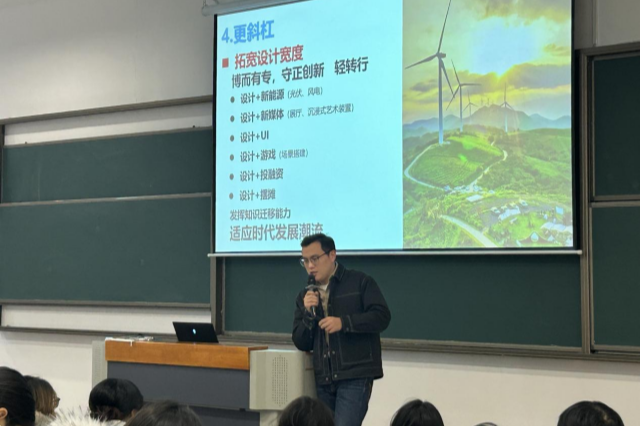 在职业方向选择上,王杨所长建议同学们可向 “更前沿、更回归、更经济、更斜杠、更国际、更下沉” 六大维度拓展。既可以深耕技术,掌握 AI 等高效工具实现降本增效;也可回归设计本质,聚焦真实需求,用系统化思维解决实际问题;还能拓宽能力边界,尝试 “设计 + 新能源”“设计 + 新媒体”等跨界组合,发挥知识迁移能力适配时代潮流。