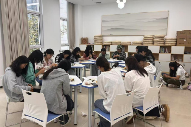 随后的手工 DIY 活动上,老师先讲解风铃的文化寓意与制作技巧。新生发挥创意,用干橙片、木片等天然材料,搭配丝带与风铃铛制作专属风铃,分享心得间,风铃声消散拘谨,让新生寻得内心宁静、拉近彼此距离。