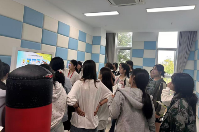 参观中,新生解锁 “八室一体” 功能空间:预约接待室有值班同学提供服务,心理读物助新生放松;自主调节室的 VR 动感单车,让新生 “穿越” 不同场景,骑行时还能测心率;个体咨询室是 “专属树洞”,可解迷茫;团体辅导室供新生与同频伙伴互动,提升心理素质;游戏沙盘室借沙具搭建解心结;音乐放松室凭躺椅与治愈音乐驱焦虑;情绪宣泄室以安全方式助新生释压,让新生切实感受学校对心理健康的重视。