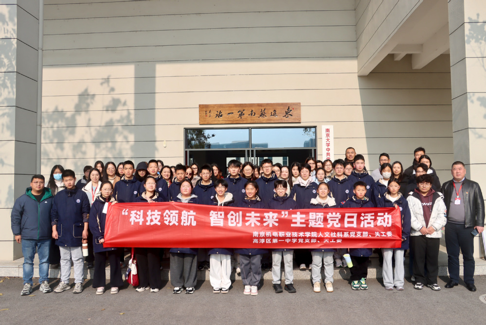 为深入落实立德树人根本任务,推动科技教育与人文素养协同发展,实现 “校地共建、资源共享、协同育人” 目标,2025年12 月 18 日下午,南机电人文社科系党支部、关工委联合高淳区第一中学党支部、关工委共同举办 “科技领航,智创未来” 主题党日活动。人文系团委积极参与活动筹备与组织工作,组织青年团员志愿者全程提供引导、讲解辅助等服务,为活动顺利开展注入青春活力。高淳区第一中学 30 余名师生代表与人文系全体党员老师、系部关工委成员共同参与此次活动,在科技探索与红色传承中厚植家国情怀、激发奋进力量。