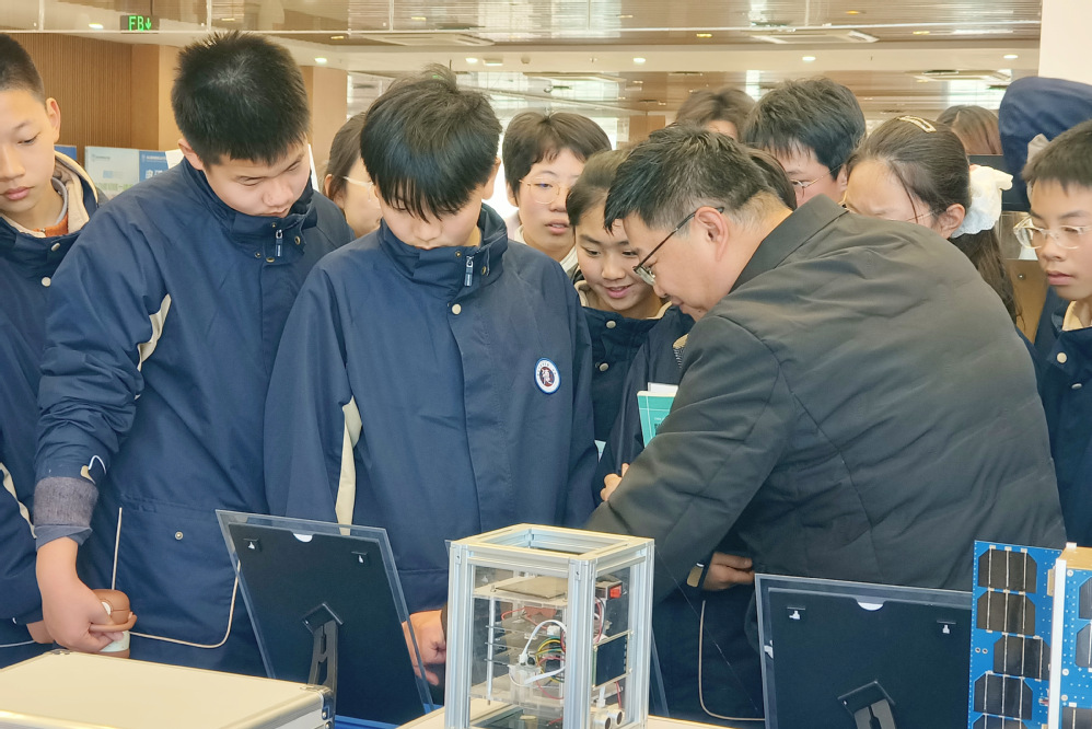活动第一阶段,师生们走进学校航天科普馆,开启了一场沉浸式科技探索之旅。人文社科系党支部书记李杰致欢迎辞,然后在蓝岛创客空间候俊老师的引导下,大家近距离观摩航天器材模型、前沿科技成果展示,详细了解我国航天事业的发展历程与辉煌成就。从航天器构造原理到太空探索技术突破,从航天精神传承到科技创新使命,一个个生动的科普案例、一组组详实的数据资料,让师生们深切感受到科技强国的澎湃力量,进一步激发了探索未知、勇于创新的浓厚兴趣。参观过程中,同学们不时驻足询问,与党员老师深入交流,现场学习氛围热烈浓厚。