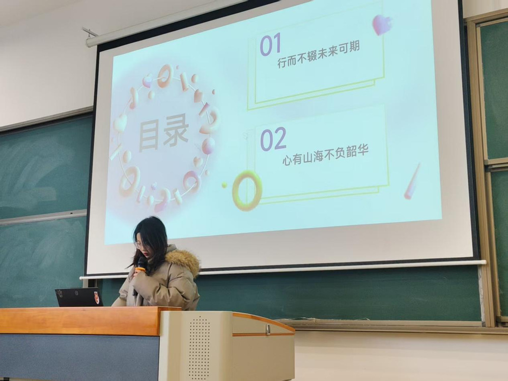 随后,两位国家奖学金获得者也登台传经送宝:电子工程系赵思涵同学分享了在专业深耕、科研实践中的奋斗经验,强调时间规划与持续钻研的重要性,跨系交流的视角为同学们带来多元启发;人文社科系冯尹同学结合自身学术探索与实践锻炼的经历,传递了以科技赋能专业、实现全面发展与自我突破的成长感悟。