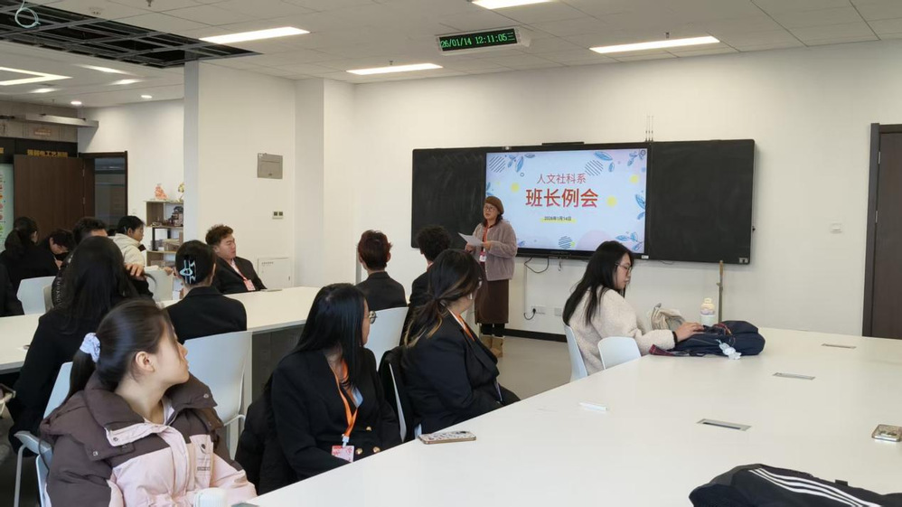2026年1月14日,班长例会在“一站式”学生社区毅楼102如期召开,人文社科系学生会指导老师梁娟娟主持会议,人文社科系全体班长悉数参会,会议围绕班长履职、班级管理及重点工作落实作出全面部署。