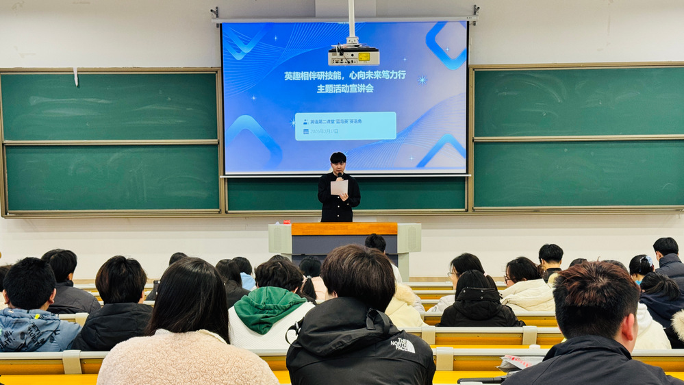 为系统介绍本学期英语角系列活动整体安排,明晰活动参与要求与核心目标,进一步激活校园英语学习氛围,持续夯实同学们的英语应用能力,英语第二课堂“蓝岛英”英语角于2026年3月17日在善学楼102举办2025-2026学年第二学期主题活动宣讲会,本次活动由董展硕同学主持。