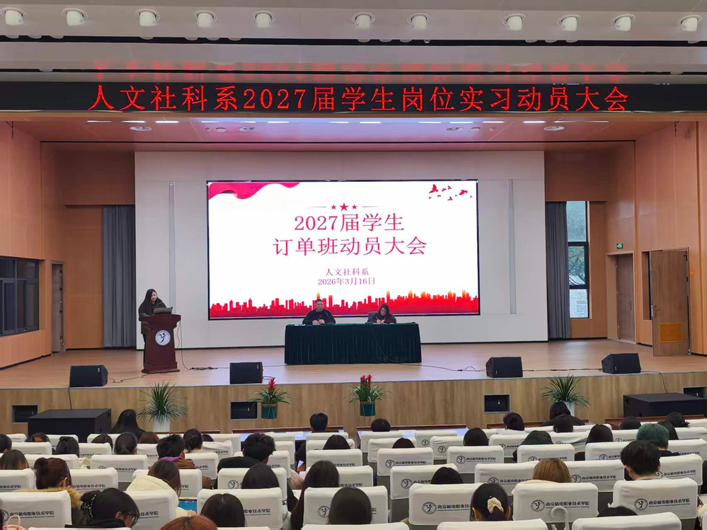 2026年3月16日,人文社科系在乐学楼101教室召开2024级订单班动员大会。此次会议旨在通过校企协同育人机制,为学生搭建从校园学习到职场实战的平稳过渡桥梁。人文社科系主任曹安林、系党支部书记李杰出席会议,全体2024级学生及辅导员参加大会。
