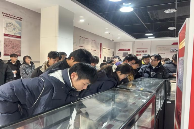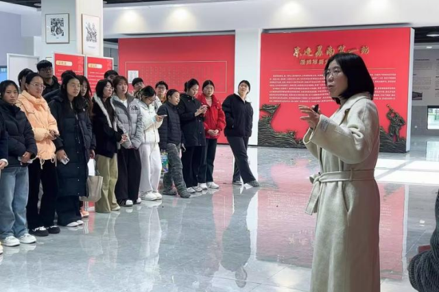 上午,同学们在教师的带领下走进校内新四军历史研学基地,开展实地参观学习。基地内丰富的展陈史料、珍贵的历史文物与生动的图文讲解,系统呈现了新四军在抗日战争中的奋斗历程与精神风貌。教师们结合展陈内容开展现场教学,围绕“信仰的力量”“人民军队的初心”等主题进行讲解,引导学生从具体的历史细节中理解革命传统的深刻内涵。同学们认真观看、仔细聆听,在近距离接触历史的过程中增强了对红色文化的认同与思考。