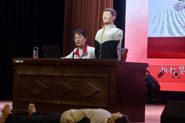 培训期间,高淳区红十字会资深培训师刘美玉老师全程进行专业指导。体育部教师团队聚焦心肺复苏(CPR)与自动体外除颤器使用(AED)核心要点,采取“理论讲解+实操示范”相结合的教学模式,逐步拆解操作流程,规范动作标准。教学过程注重强化学生风险辨识意识与团队协作能力,在模拟真实场景中锻炼学生的心理素质与判断力。教师们全程耐心指导学生进行实操练习,及时纠正操作偏差,确保技能传授准确到位。经统一考核,本次培训通过率达90%以上,绝大多数学生已初步掌握基础心肺复苏及AED使用技能,实现了急救知识在新生层面的全面覆盖。