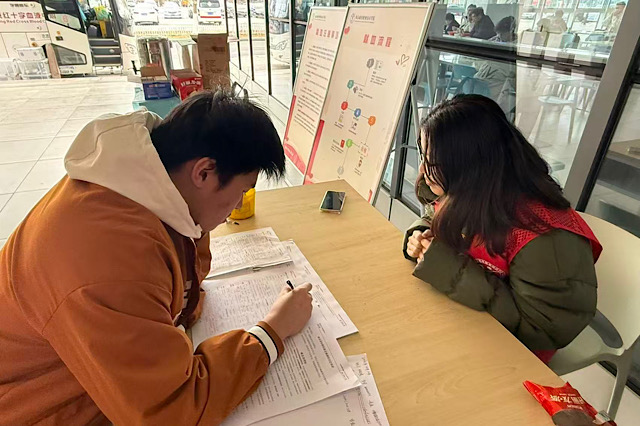 冬日微风虽带凉意,献血现场却暖意融融、秩序井然。活动现场,医护人员熟练地准备采血物资,同时简明讲解献血注意事项;志愿者们化身“暖心向导”,提前在休息区备好热茶、能量饼干,方便师生献血后及时补充体力,细心为有需要的师生搬来休息座椅,贴心又周到。遇到紧张的同学,便轻声讲解献血常识、分享恢复技巧;全程带着微笑,始终耐心温和,用笑容为师生驱散不安,传递暖心力量,让整个献血过程既高效又暖心。