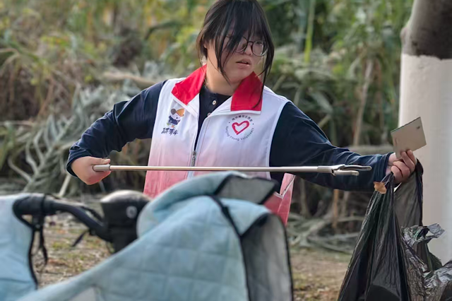 手持垃圾袋的年轻身影,恰似跃动的音符。俯身拾起的不仅是片片纸屑,更是一座城市对文明的守望。那抹跃动的志愿红,让寻常街道瞬间变成流动的课堂——原来,最美的风景不在远方,正藏在这躬身拾捡的温柔里。青春与城市在此刻达成双向奔赴。这弯腰的姿态,恰是这个时代青年人最挺拔的模样。