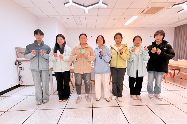 活动尾声的作品展示环节,同学们手持自己的拼豆作品合影:西施形象的拼豆摆件、印着“CMH”缩写的Hello Kitty钥匙扣、《某某》主题的梧桐叶装饰、秦彻Q版拼豆挂件等作品错落陈列,不少同学当场将作品挂在背包上,成为独特的“手工潮品”。参与同学表示:“把喜欢的IP做成拼豆,既锻炼了动手能力,又能带着‘专属周边’出门,特别有成就感。”