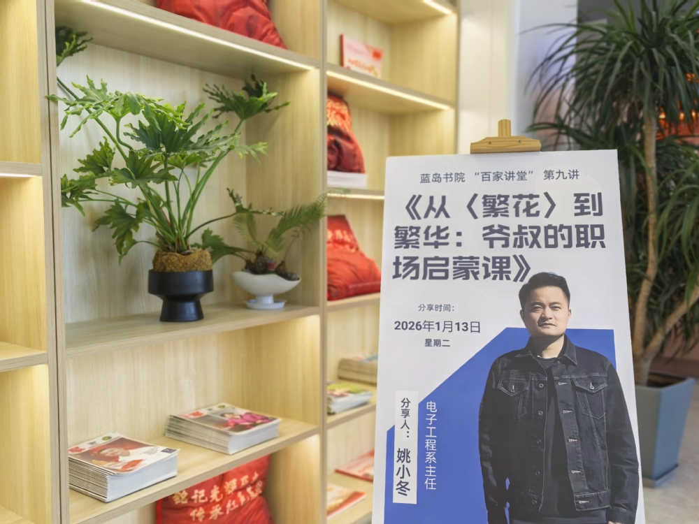 1月13日,蓝岛书院百家讲堂第九讲如期开讲。电子工程系主任姚小冬以“从《繁花》到繁华:爷叔的职场启蒙课”为主题,结合热门剧集《繁花》中的经典角色与情节,为现场学子带来了一场兼具趣味性与实用性的职场启蒙分享,各系部学子齐聚现场,共赴这场干货满满的成长盛宴。