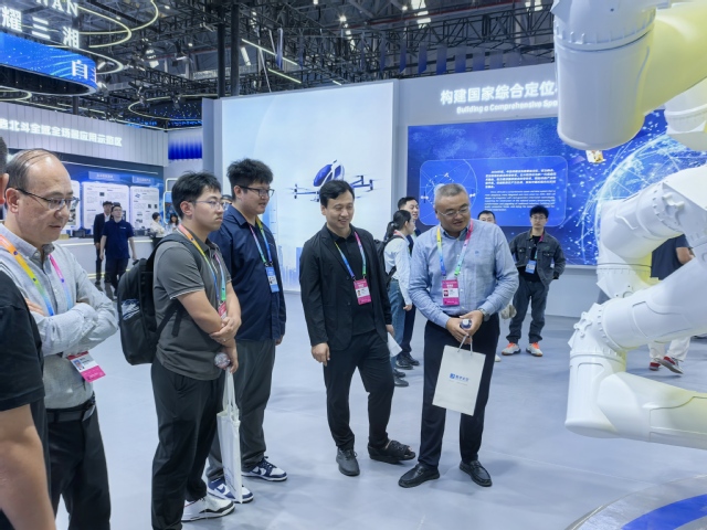 9月24日下午,团队还受邀参加了第四届北斗规模应用国际峰会会展。在展会现场,教师们观摩了来自全球多家企业及科研机构在北斗芯片模组、终端设备、位置服务及行业应用解决方案等方面的最新成果,并与参展商就技术细节和应用场景进行了探讨,为我们相关课程的教学案例库积累了丰富的实战素材。