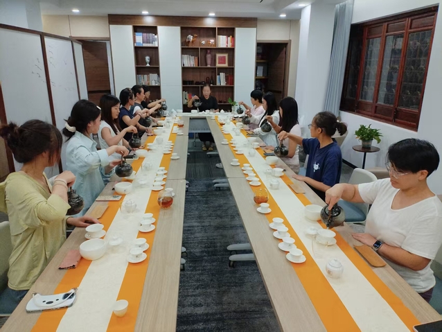 随后的茶艺体验环节,同学们跟随专业茶艺师系统学习泡茶、敬茶的礼仪与技巧。从茶叶甄选、水温控制到冲泡手法、奉茶礼仪,大家专注练习、相互交流,在茶香氤氲中感受传统茶文化的魅力,同时培养了耐心细致的处事态度与良好的沟通礼仪,这也与社团传递“诚信、共赢”正向商道的理念相契合。