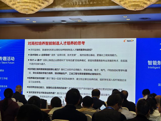观摩过程中,四位老师重点聆听了中国工程院院士李培根、e-works CEO 黄培等行业大咖的专题分享。李培根院士关于 “智能制造高端人才核心素养”的演讲,深刻剖析了新时代智能制造人才所需的战略视野、跨学科思维与实践创新能力;黄培博士结合多年行业经验,系统阐述了智能制造人才培养的探索与实践,其提出的 “领军人才、推进人才、应用人才、技能人才”四层人才架构,为高校人才培养定位提供了重要参考。