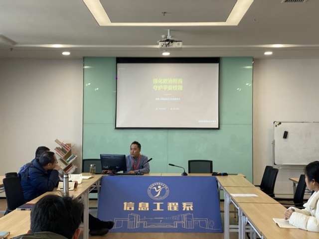 为深入贯彻落实校园安全工作政治责任,切实将“11633”安全工作体系落到实处,2026年1月8日,信息工程系党支部组织开展专题政治学习,系部安全员卞志勇担任主讲人,支部全体党员参加学习。