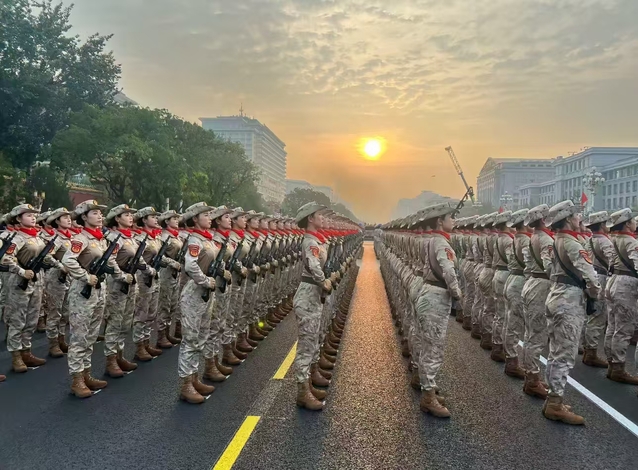2025年,因出色的政治素养、身体素质与队列表现,通过层层选拔,光荣入选纪念中国人民抗日战争暨世界反法西斯战争胜利80周年阅兵式女兵方阵。从江苏到山东,再到北京,七个月的封闭训练中,我与战友们顶烈日、战酷暑,每一个动作都精益求精,每一个细节都力求完美。当阅兵式上迈着铿锵有力的步伐走过天安门广场时,那份自豪与荣耀,是用汗水和毅力书写的青春答卷。