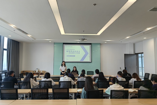 为进一步规范2025-2026学年秋学期学生资助管理工作,提升辅导员及学工干事的业务能力和服务水平,确保各项资助政策精准落地、惠及学子,学生工作处于9月24日在弘毅楼“一站式”学生服务社区开展学生资助工作业务培训会。学生资助管理中心钱莉娇、朱丹丹分别讲解,全体辅导员参加培训。