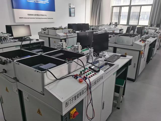 (5)西门子智能制造工程认证中心。配备可编程序控制器实训装置,可完成交通灯控制、多液位控制、自动运料小车等实训项目,提高学生PLC开发和应用能力。