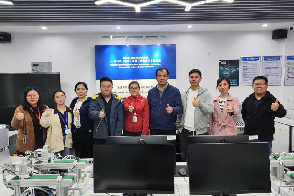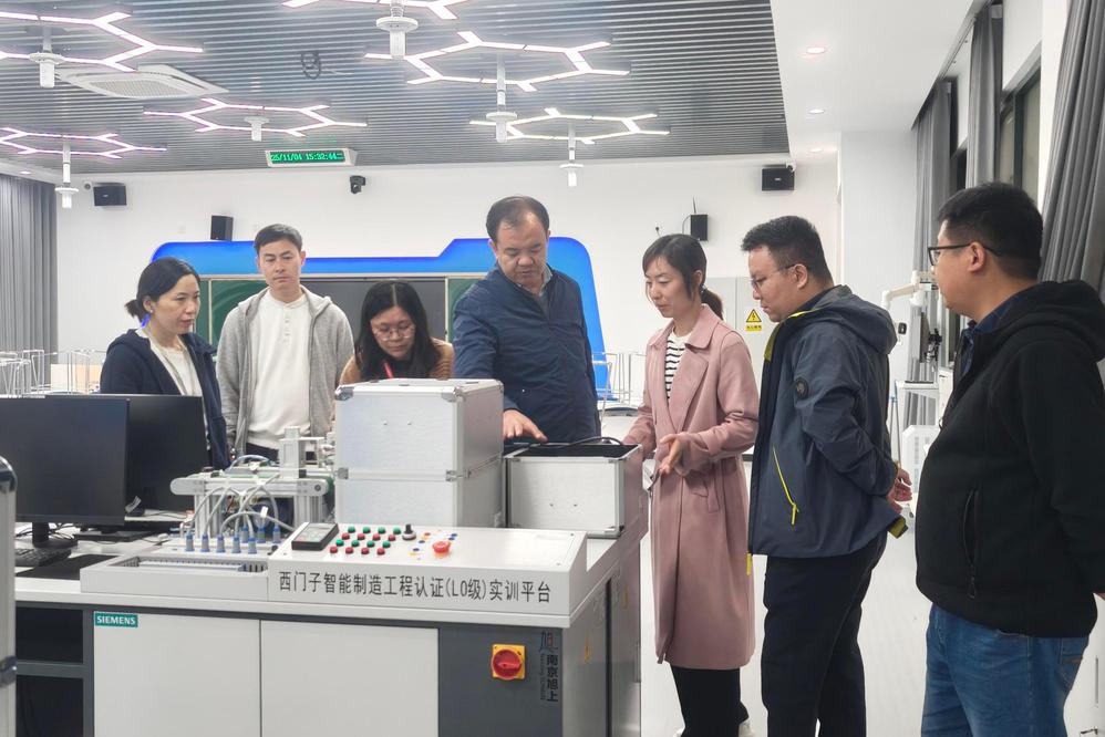 会议期间,河南技师学院智能制造学院李院长和郑院长两位院长实地参观了西门子L0\L1实训室,详细了解实训室建设标准、设备配置及教学融合规划。在观摩课程教学展示后,来访领导对我们“校企共建平台、考证融入教学”的创新模式给予充分肯定,认为该模式有效打通了人才培养与企业需求的衔接通道,并表示将借鉴我们方案推进本校相关实训室建设。