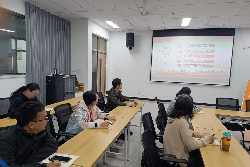 11月4日,自动化工程系党支部在敏行楼401开展了“增强文化自信,凝聚民族复兴精神力量”主题政治学习。本次学习由林敏老师主讲,支部全体党员参与学习。