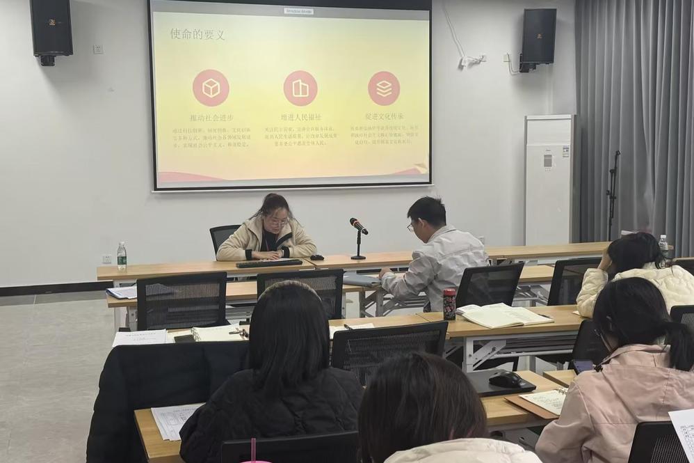 邢子然从初心使命内涵、新时代榜样力量、践行路径及未来展望四个维度,深刻阐释了“为人民谋幸福、为民族谋复兴”的核心要义,通过讲述张桂梅、南仁东、于敏等先进典型的感人事迹传递奋进力量,更立足本职岗位提出“坚定理想信念、提升综合能力、勇于担当作为、保持艰苦奋斗”的践行准则。