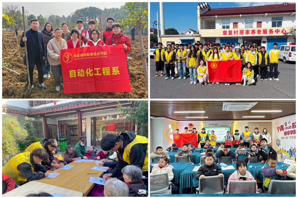 系团委将实践育人阵地从校园拓展至社区、乡村与红色场馆,让青年学生在服务社会中实现价值引领。同学们深入淳溪街道大丰社区、荣复村、敬老院等地,开展文化宣讲、普法教育、环保行动及敬老服务,累计参与志愿服务超过500人次,近30场学雷锋活动在基层遍地开花,生动诠释了“奉献、友爱、互助、进步”的志愿精神。